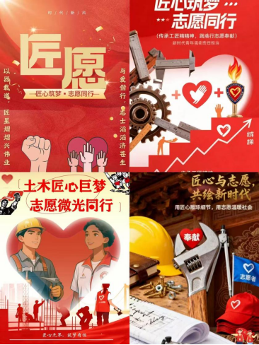 11月25日,“土木匠心筑梦·志愿微光同行”主题海报设计大赛正式启动。同学们踊跃参与,通过创意的设计语言,彰显工匠们精益求精的匠心本色,以及志愿者扎根基层的服务姿态。材料科学与工程252班陈浩宇同学表示:“设计海报不仅让更多同学读懂匠心内涵、知晓志愿意义,更激励同学们用行动践行志愿服务精神。”一幅幅饱含深意的海报,营造出浓厚的活动氛围,让志愿理念深深烙印在青年心中。