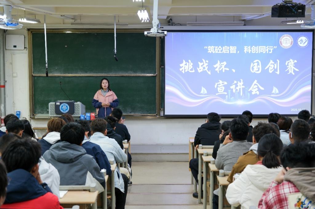 为激发全校学生的学术创新与创业热情,搭建高水平的科创赛事交流平台,10月27日土木工程学院“筑砼启智,科创同行”挑战杯、国创赛赛事宣讲会在主教学楼B235教室举行。此次交流会由赵玲玲、胡秋芳、丁梓健主讲,学院入团积极分子及2025级部分同学参加。辅导员张杰主持分享会。本次宣讲会旨在为同学们深度解析两大顶尖赛事的奥秘,点亮科创之路的指引明灯。