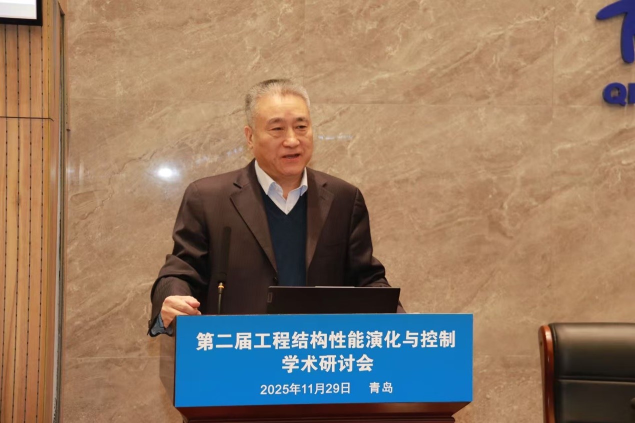 开幕式上,青岛理工大学党委常委、副校长陈连军代表学校致辞,向与会嘉宾表示热烈欢迎。他回顾了学校七十余年的办学历史与发展成就,指出青岛理工大学已形成土木建筑、机械制造、环境能源等多学科协调发展的格局,在工程结构耐久性、智能控制、数字孪生等领域形成了鲜明特色和优势。陈连军强调,当前工程结构领域正迎来以“新基建”“双碳战略”为代表的发展机遇,结构性能研究亟须融合数字技术、材料科学等多学科知识,实现从“经验驱动”到“数据驱动”、从“被动安全”到“主动控制”的跨越。希望本次研讨会能成为学术交流与思想碰撞的重要平台,为推动我国工程结构领域的创新与发展注入新动力。