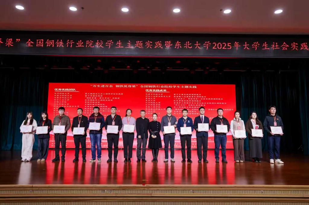 12月3日,“万生进百企、钢铁筑脊梁”全国钢铁行业院校学生主题实践暨东北大学2025年大学生社会实践活动总结表彰大会在东北大学举行。我校土木工程学院“钢魂筑梦”红色寻访实践团凭借出色的实践成果和扎实的育人成效,从全国多所兄弟院校的优秀团队中脱颖而出,荣获“优秀团队”和“优秀成果”两项表彰。
