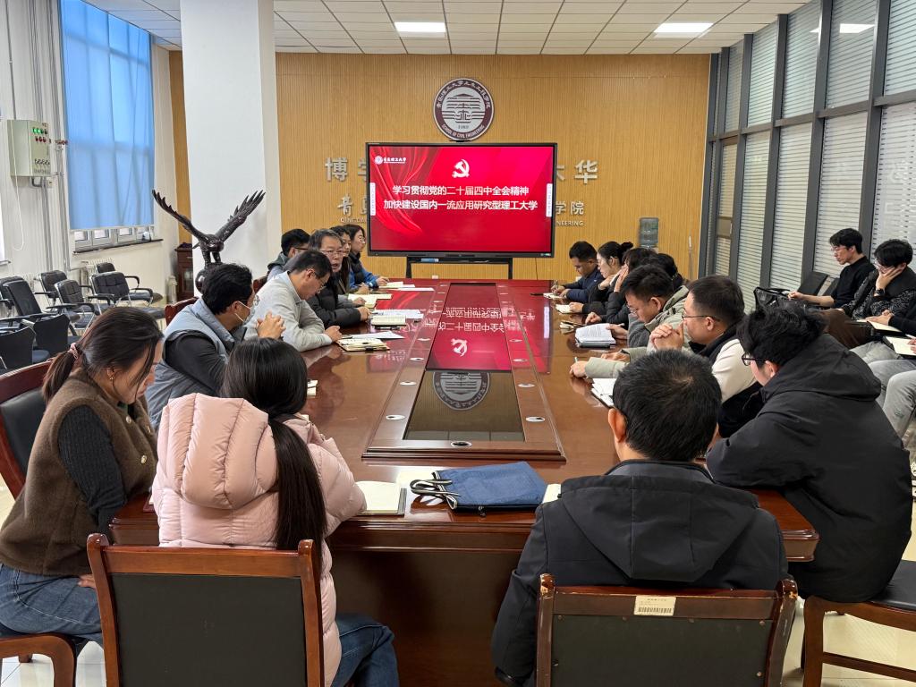 会议集中传达学校党的建设工作领导小组会议暨二级党委(党总支)书记工作例会会议精神,统筹推进五项重点任务。一是对照学校巡视整改清单,聚焦党建与业务融合、党员教育管理等关键问题,细化整改措施;二是由王鹏飞传达校纪委党风廉政建设要求,紧盯招生招聘、科研经费等重点领域,常态化开展廉洁教育;三是规范整理党建工作材料,迎接山东省党建考核和学校集中党建考核;四是通报本年度学院宣传思想文化工作情况,主动挖掘先进典型,弘扬科学家精神与工匠精神;五是推进统战“四张清单”落地,通过主题班会等形式开展政策宣讲,凝聚发展合力。