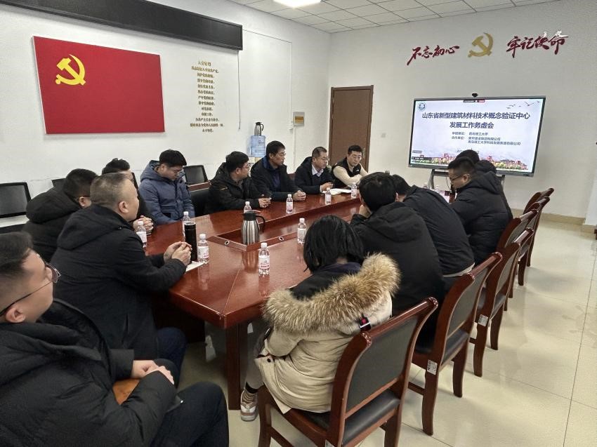 为准确把握科技成果转化新形势,加速推进山东省新型建筑材料技术概念验证中心建设,1月21日下午,成果转化中心在土木楼207会议室组织召开概念验证中心建设推进会暨顾问专家座谈会。概念验证中心主任、土木工程学院院长侯东帅主持会议。成果转化中心主任路成刚,合作单位荣华建设集团、青岛理工大学科技发展集团代表,中心骨干成员及相关领域顾问专家参加会议。