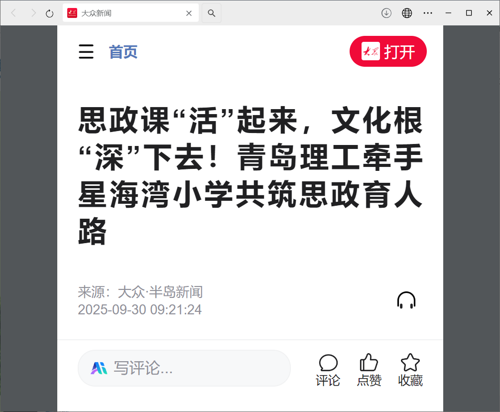 大众新闻:思政课“活”起来,文化根“深”下去!青岛理工牵手星海湾小学共筑思政育人路