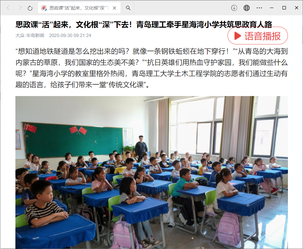 半岛新闻:思政课“活”起来,文化根“深”下去!青岛理工牵手星海湾小学共筑思政育人路