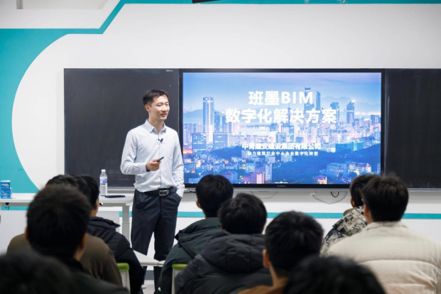 为深化产教融合,应对建筑行业数字化、智能化转型趋势,近日,土木工程学院《岩土工程理论与应用》研究生课程成功举办“工程专家进课堂”活动。12月2日下午,课程特邀学院2017届校友中青建安控股集团科技创新中心主任、中青建安易建科技总经理王剑阁走进课堂,为研究生们带来了一场题为“班墨BIM数字化解决方案”的行业前沿讲座。讲座现场气氛热烈,座无虚席。学院教师时伟、张瑾及相关专业研究生共同参加了本次活动,讲座由时伟教授主持。
