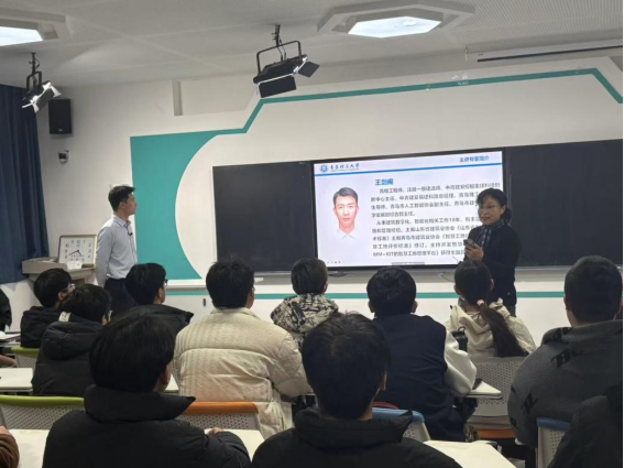 本次讲座是课程深化产教融合、推动交叉学科建设的重要实践。主持人时伟教授在开场介绍中强调,邀请具有丰富产业经验的专家走进课堂,旨在打破理论教学与工程实践之间的壁垒。王剑阁主任作为企业技术负责人,同时兼任青岛多所高校校外研究生导师,并主导参与了山东省、青岛市多项智慧工地技术标准编制,其职业履历本身就是产教融合的生动体现。他所分享的内容直接来源于青岛海天中心、山东大学图书馆等国家级重点工程的实践,为学生提供了最前沿的产业视角。